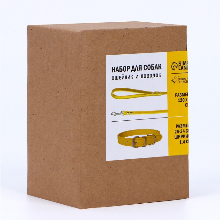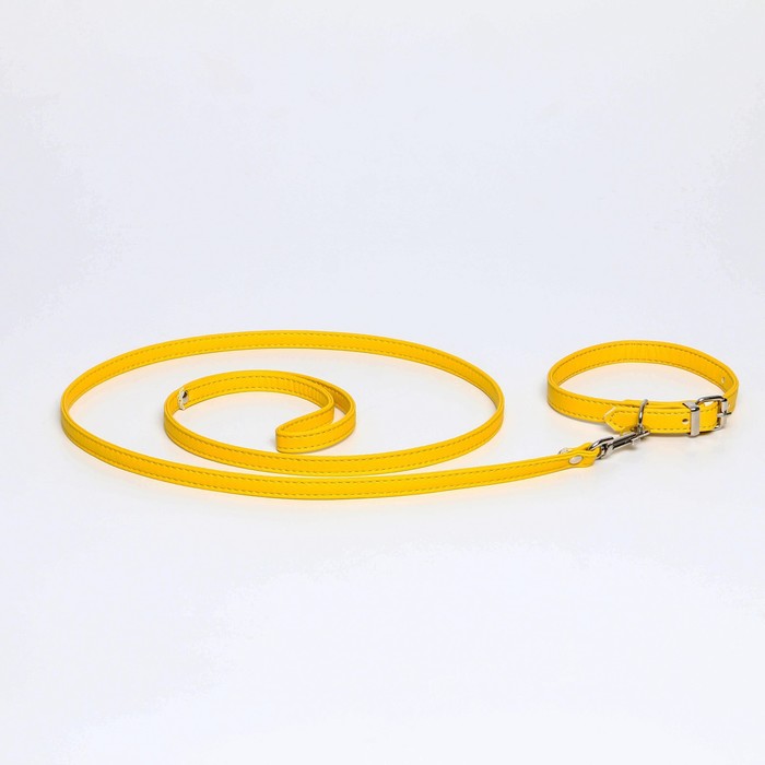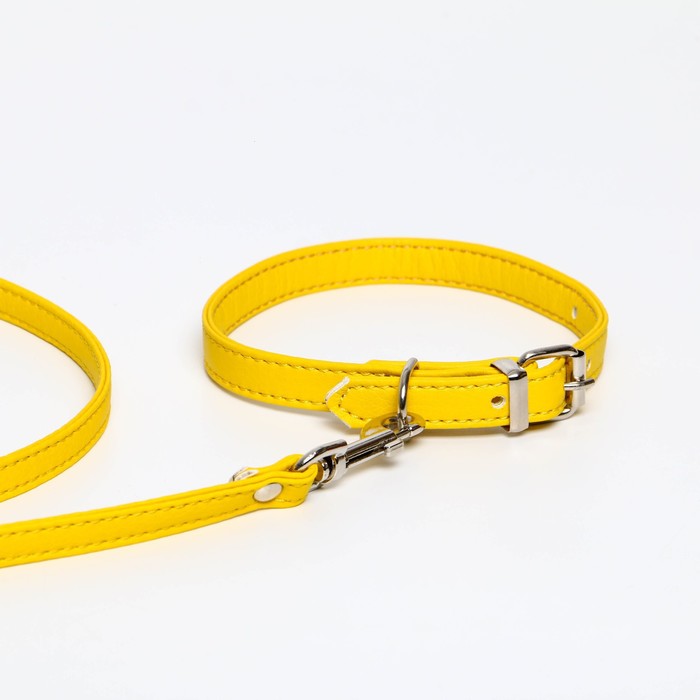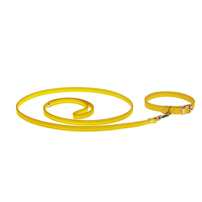 Комплект ошейник (26-34×1.4 см) и поводок (120×1 см) из экокожи, жёлтый