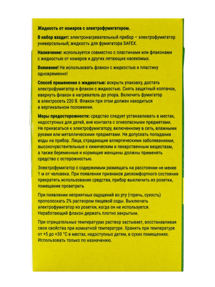 Технические характеристики Комплект от комаров SAFEX (фумигатор+жидкость) 2 набора