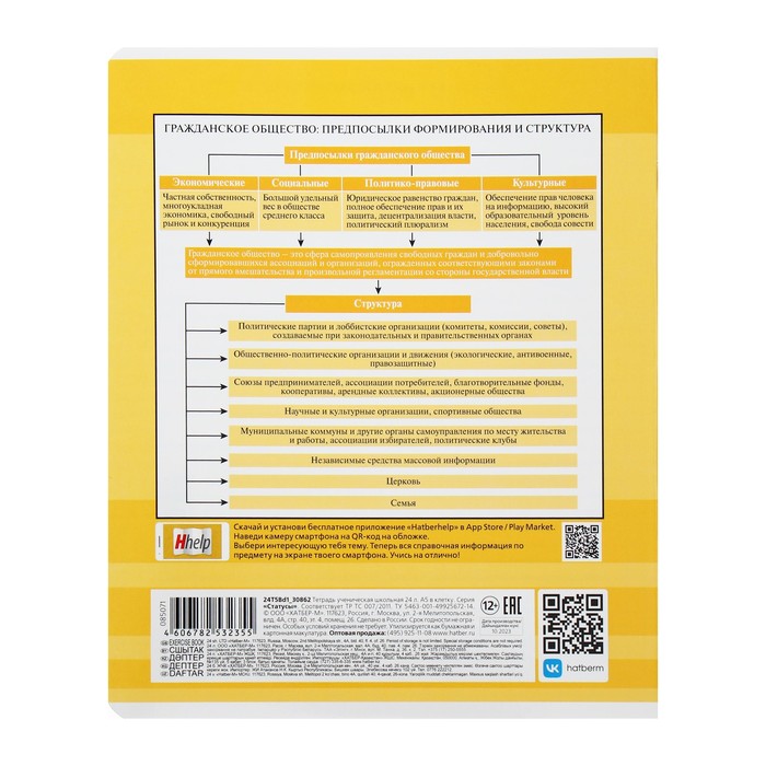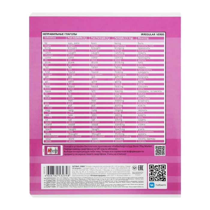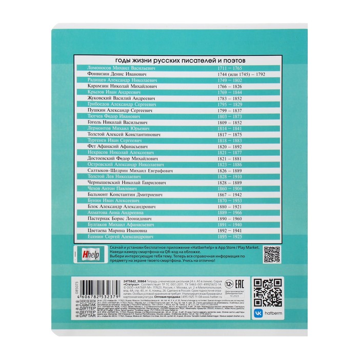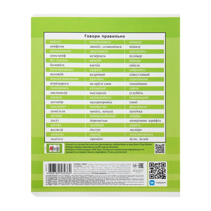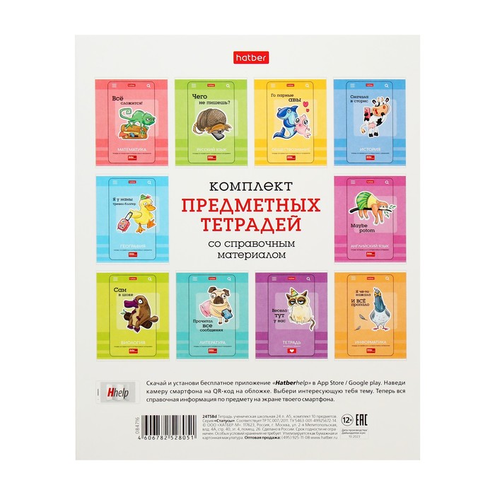 Технические характеристики Комплект предметных тетрадей 24 листа «Статусы», 10 предметов, обложка мелованный картон, со справочным материалом
