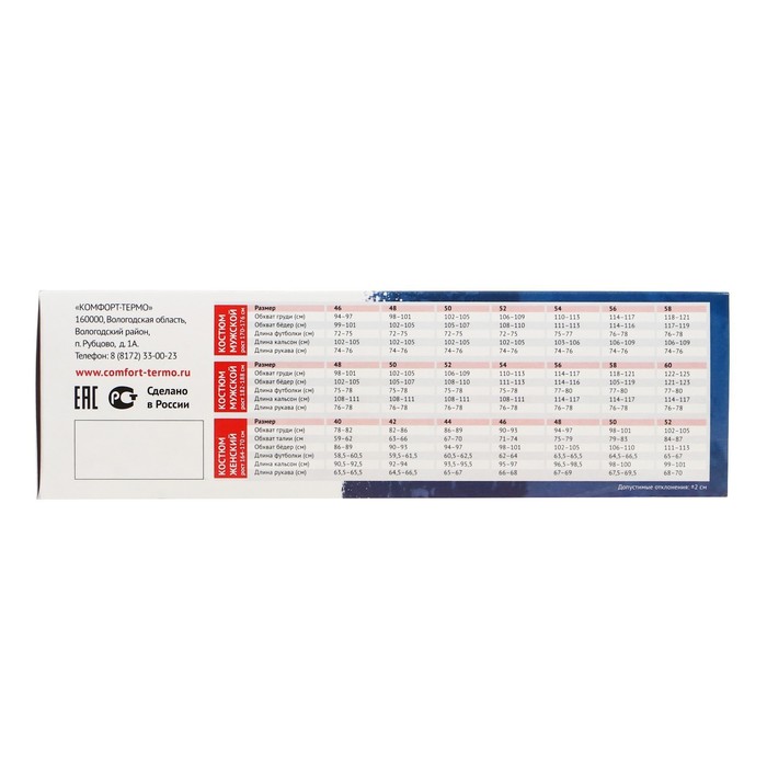 Технические характеристики Комплект термобелья мужской Comfort Universal (2 слоя), размер 46, рост 170-176 см