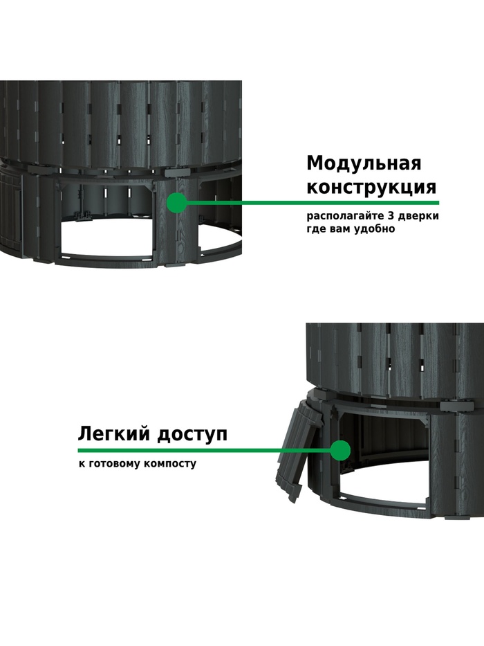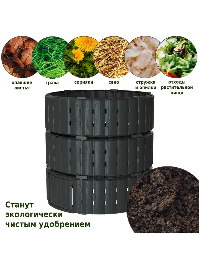 Компостер садовый Piteco, пластиковый, 1000 л, 108×108×110 см, чёрный