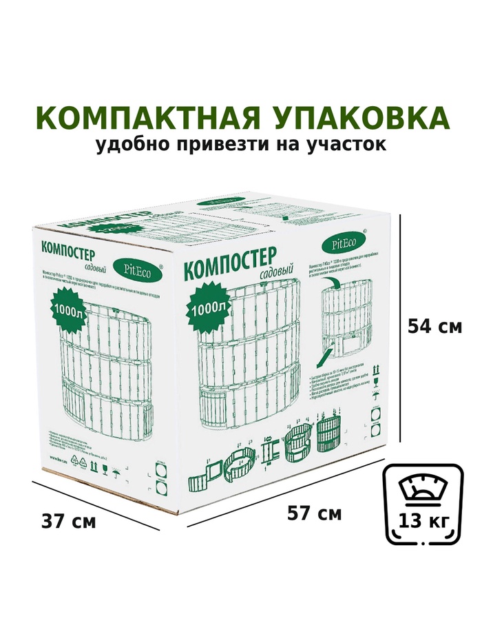 Технические характеристики Компостер садовый Piteco, пластиковый, 1000 л, 108×108×110 см, чёрный