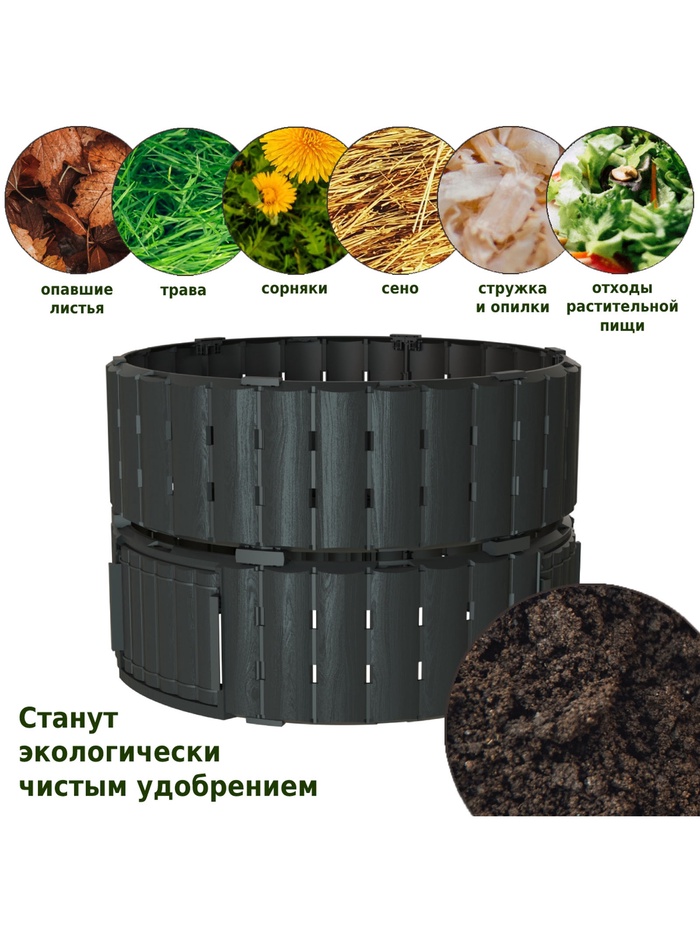 Компостер садовый Piteco, пластиковый, 670 л, 108×108×73 см, чёрный