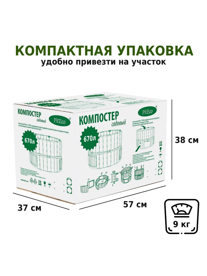 Технические характеристики Компостер садовый Piteco, пластиковый, 670 л, 108×108×73 см, чёрный