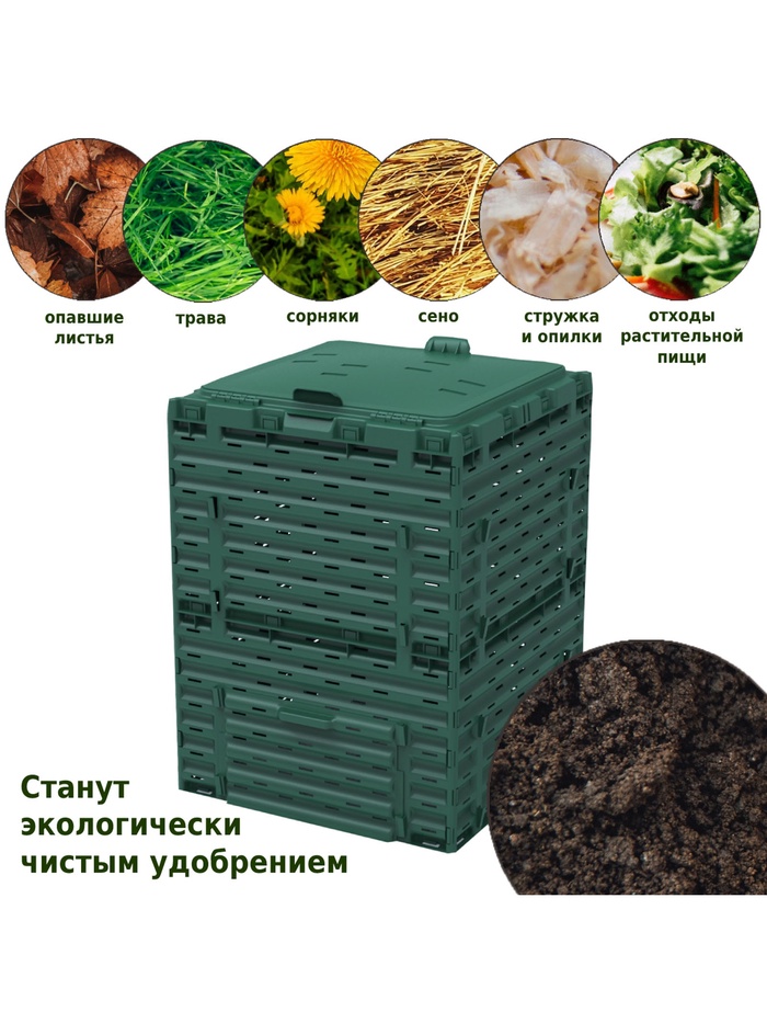 Компостер садовый Piteco, с крышкой, пластиковый, 300 л, 60×60×80 см, зелёный