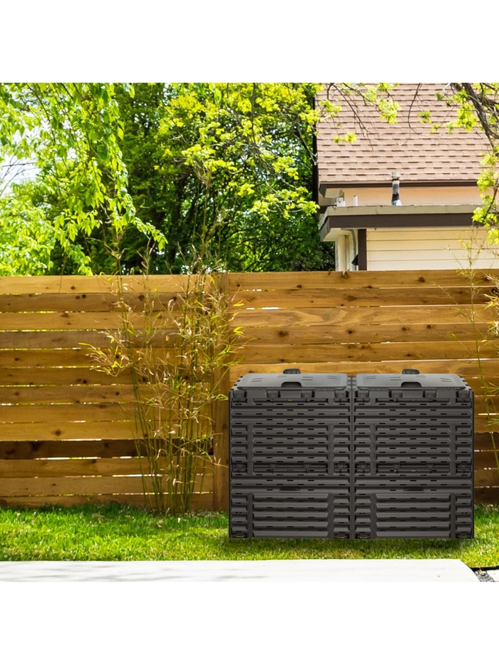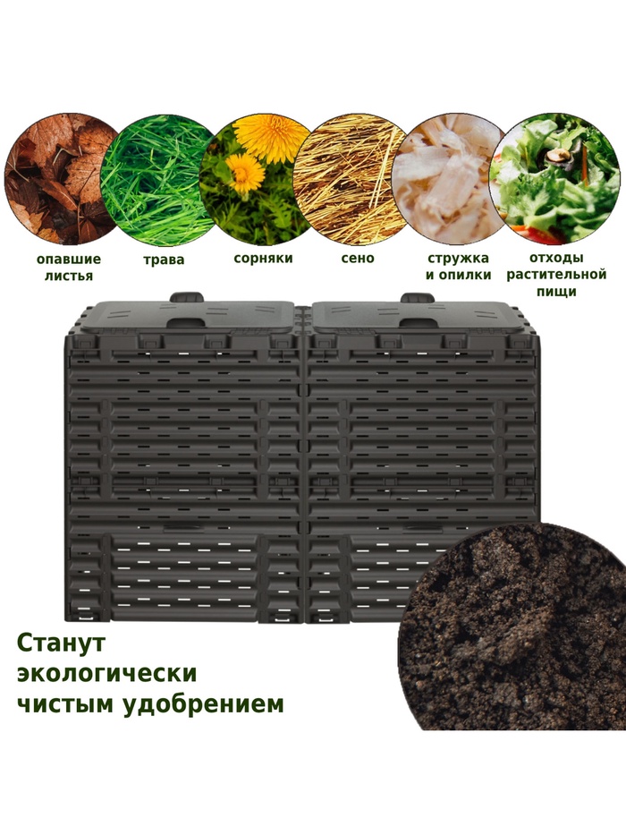 Компостер садовый Piteco, с крышкой, пластиковый, 600 л, 120×60×80 см, чёрный