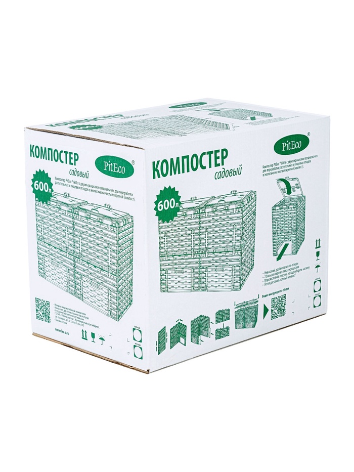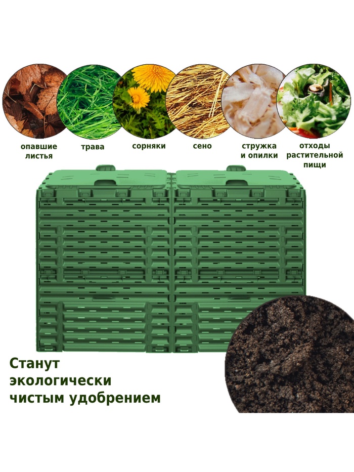 Компостер садовый Piteco, с крышкой, пластиковый, 600 л, 120×60×80 см, зелёный