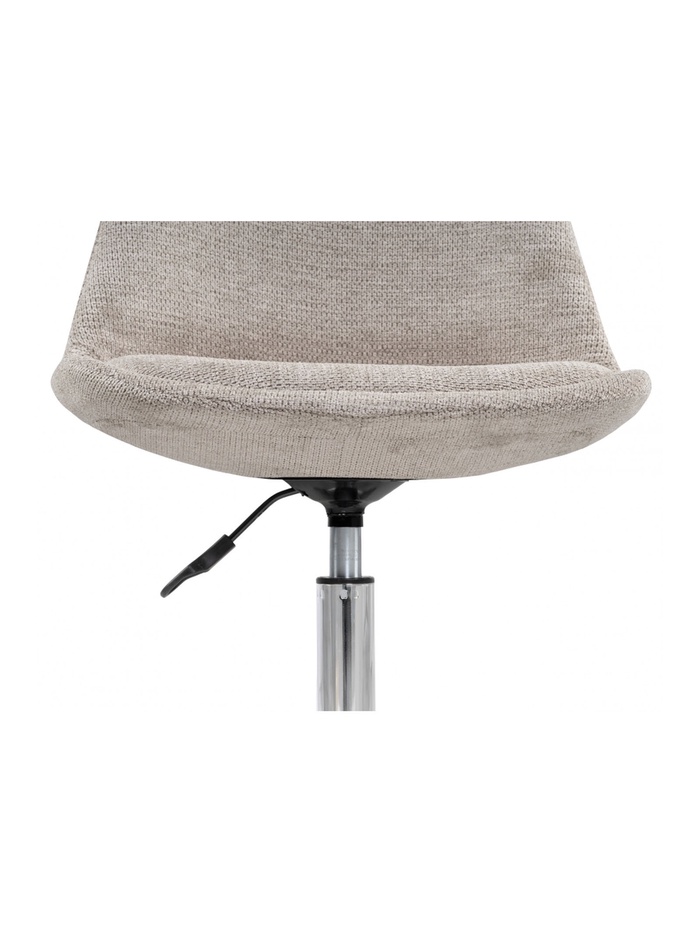 Сиденье и спинка обиты мягкой тканью, обеспечивая приятное тактильное ощущение и комфорт при длительном сидении. Прочный металлический каркас с хромированным покрытием гарантирует долговечность конструкции, а регулируемая высота сиденья позволяет адаптировать кресло под рост пользователя.
