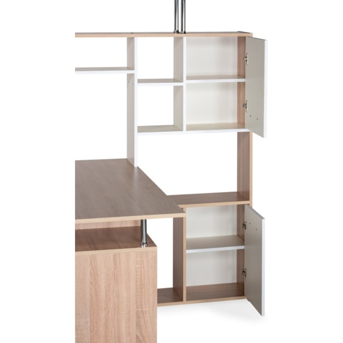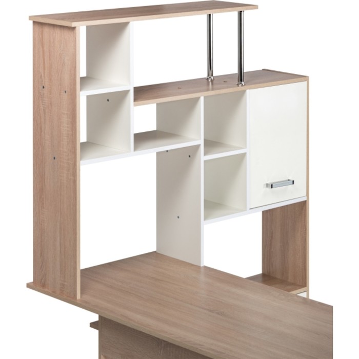 Компьютерный стол КС-15 - все самое необходимое для комфортного рабочего места. Комплектация представлена из: письменного стола с тумбой с выдвижными ящиками, двух шкафчиков, где можно хранить все самое необходимое под рукой, и надстройки с полками для книг и предметов декора. Каркас и фасад выполнен из ЛДСП. На столешнице без труда можно разместить компьютер и предметы для учебы. Полки уже встроены в конструкцию надстройки, что позволяет не сверлить стены.