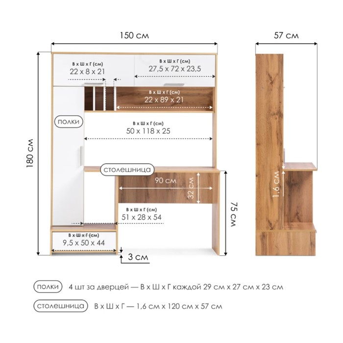 | Размеры товара | 57 × 150 × 180 |