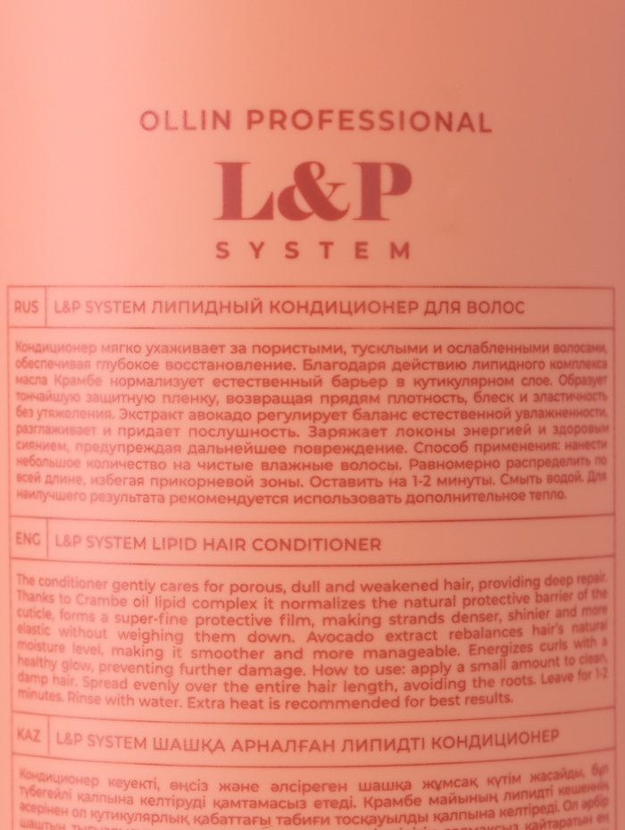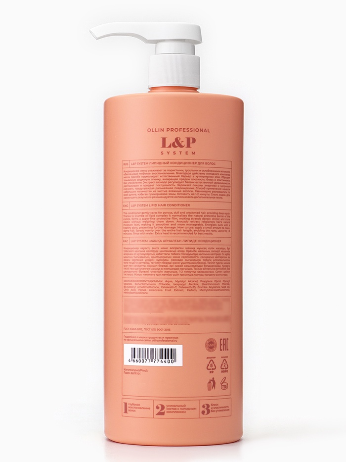 Технические характеристики Кондиционер для волос липидный L&P SYSTEM OLLIN PROFESSIONAL, глубокое восстановление, 1000 мл