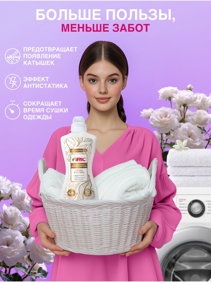 Средство помогает уменьшить износ ткани при регулярных стирках, сохраняя структуру волокон более мягкой и эластичной. Благодаря этому вещи дольше сохраняют первоначальный внешний вид, не становятся жёсткими и остаются комфортными в носке. ARIC «Тайна Востока» делает уход за бельём более простым и эффективным, улучшая не только тактильные свойства ткани, но и общее впечатление от чистоты и свежести.