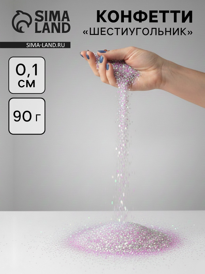 Технические характеристики Конфетти «Шестиугольники» белые, голография, 0.1 см, 90 г