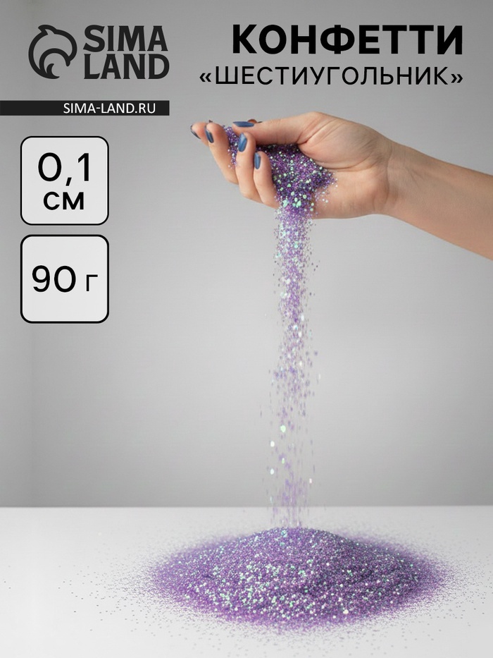 Технические характеристики Конфетти «Шестиугольники» сиреневые, перламутр, 0.1 см, 90 г