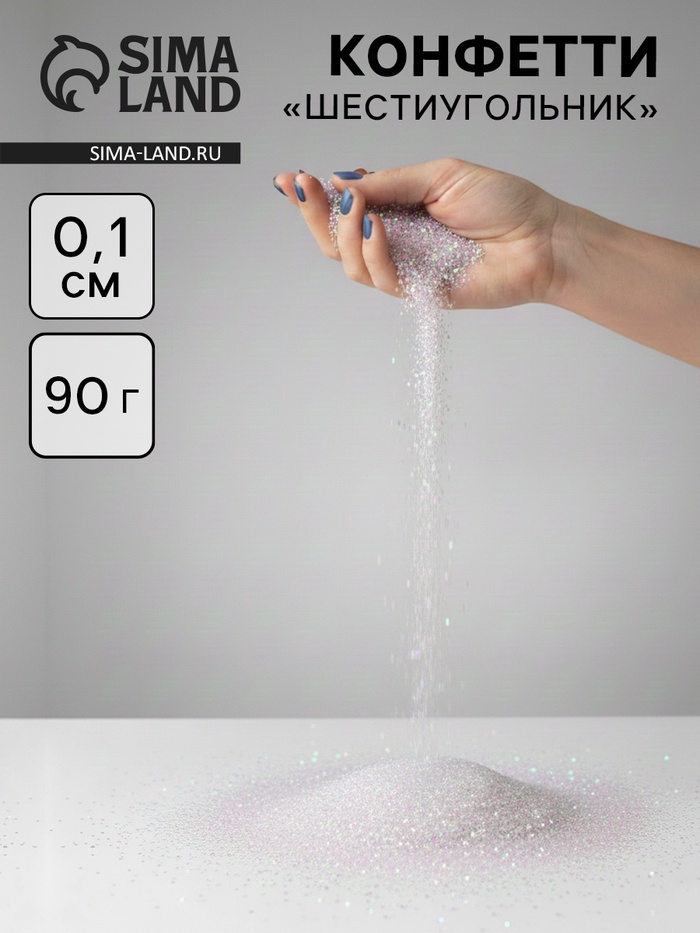 Технические характеристики Конфетти «Шестиугольники» жемчужные, голография, 0.1 см, 90 г