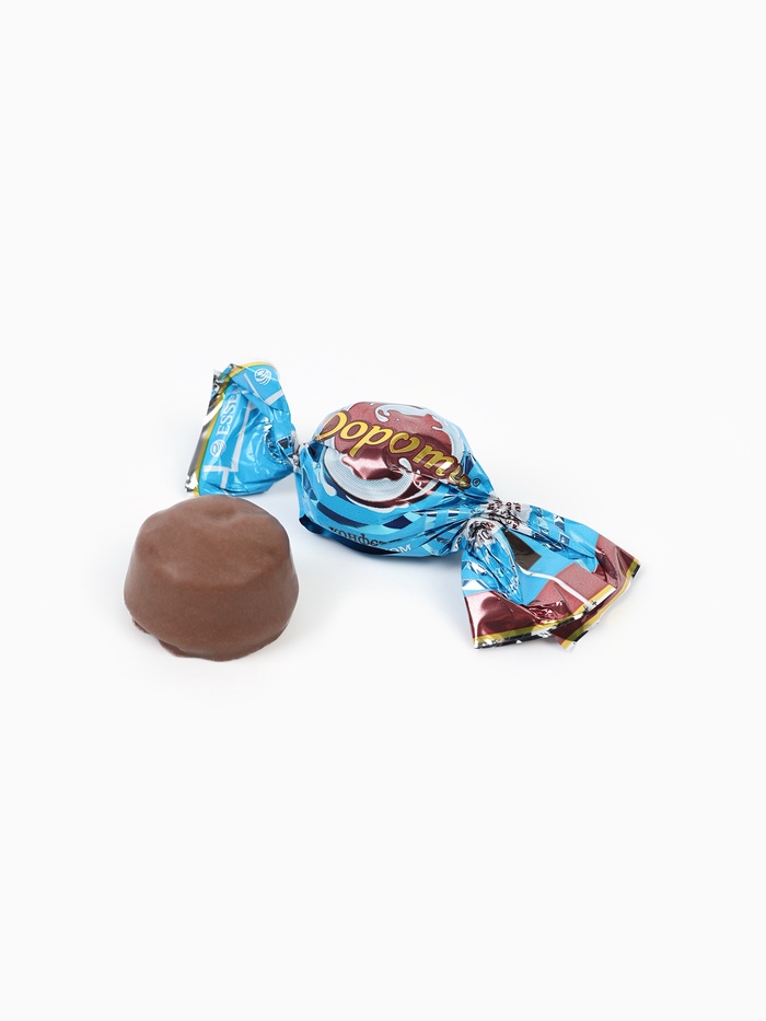Состав: сахар, патока, масла раститтельные, в том числе соевые, молоко сухое обезжиренное, сыворотка молочная сухая, какао-порошок алкализованный, соль, эмульгаторы (лецитин, Е476, Е492), ароматизатооры, агент желирующий - пектины, краситель - сахарный колер простой, ферментныйпрепарат микробного происхождения - инвертаза, антиокислитель: токоферолы, концентрат смеси.