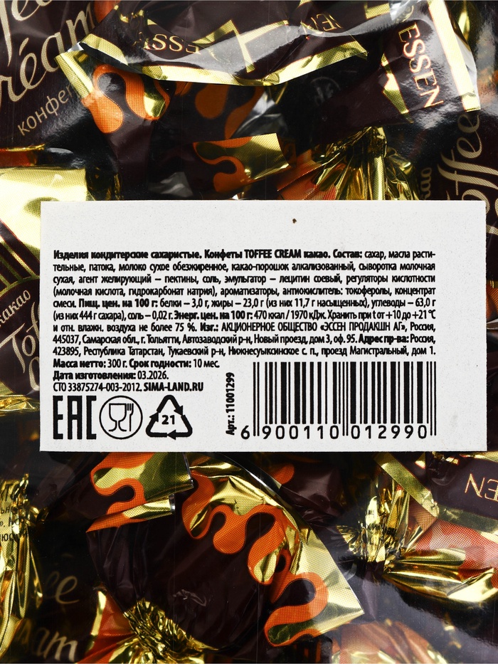 Конфеты Toffee cream какао, 300 г