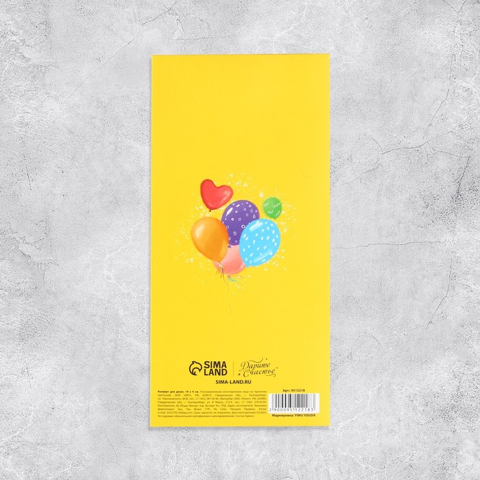Технические характеристики Конверт для денег с дополнительным элементом «Твой день», ручная работа, 19×9 см