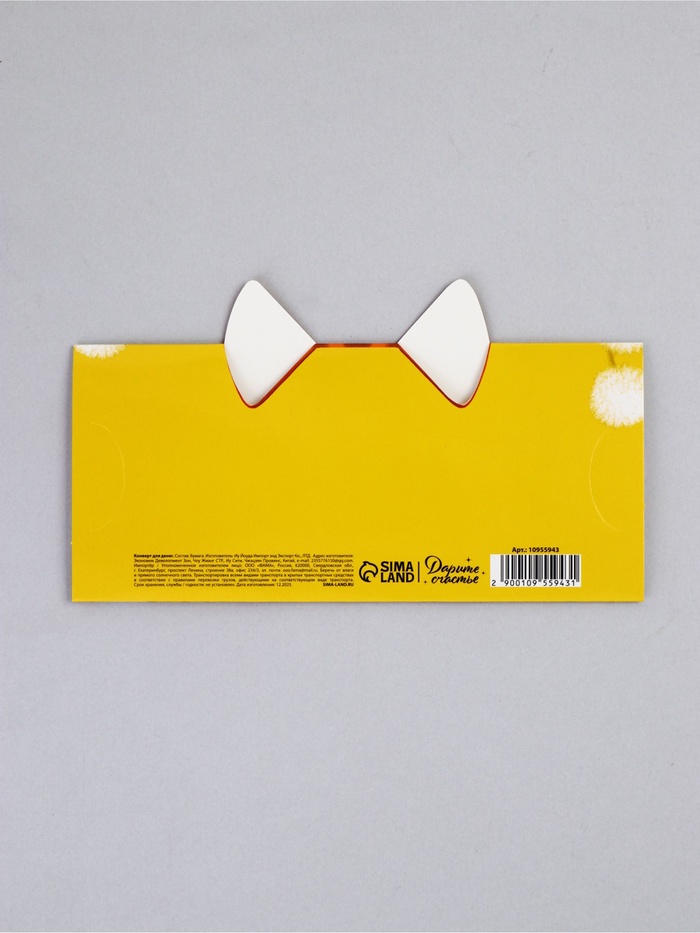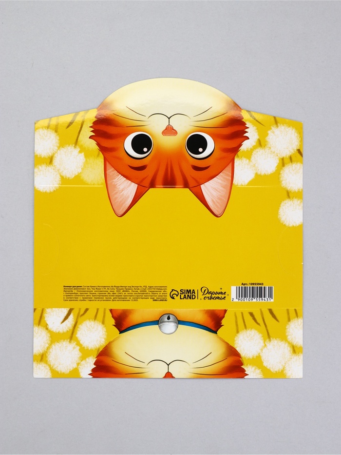 Конверт для денег формовой «Котик», 17,5 х10см