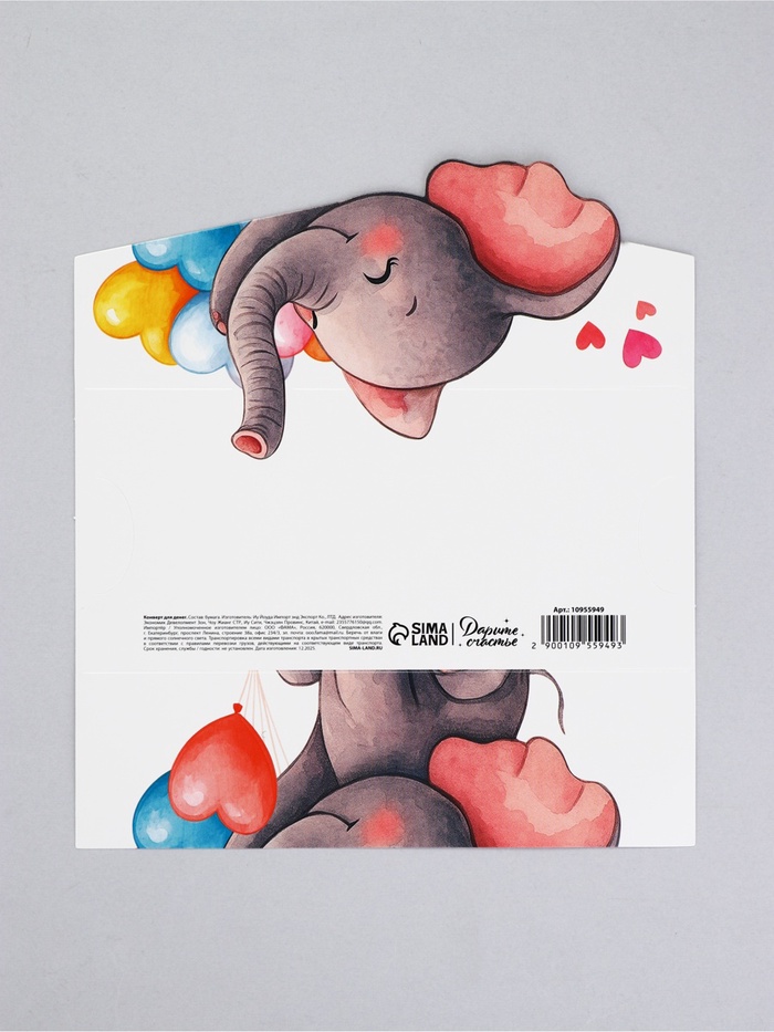 Конверт для денег формовой «Слоник», 17,5 х10см