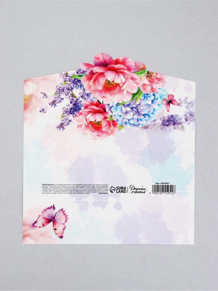 Конверт для денег формовой «Цветы», 17,5 х10см
