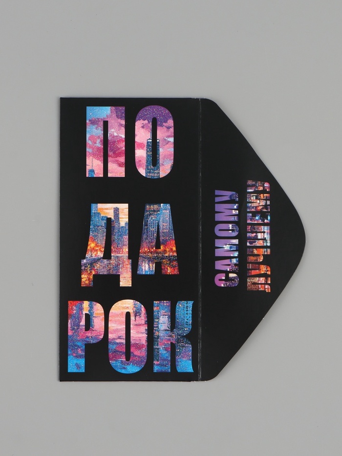 Конверт для денег «Подарок», чёрный/синий, 16.5×8 см