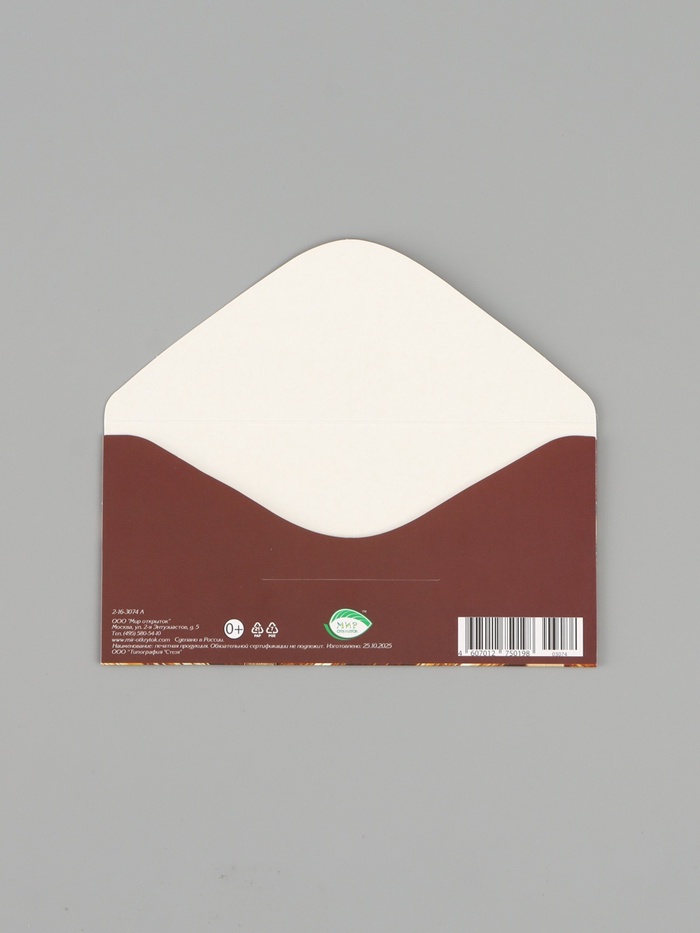 Конверт для денег «Подарок», коричневый бант, 16.5×8 см