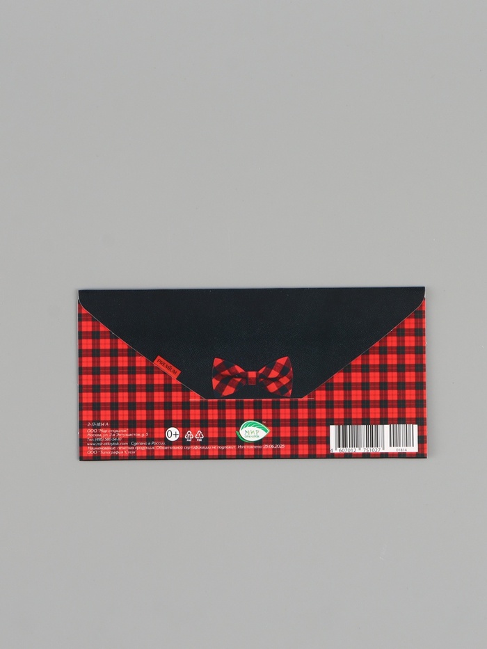 Конверт для денег «Подарок», красный/чёрный, 16.5×8 см