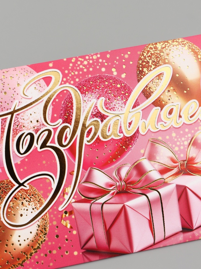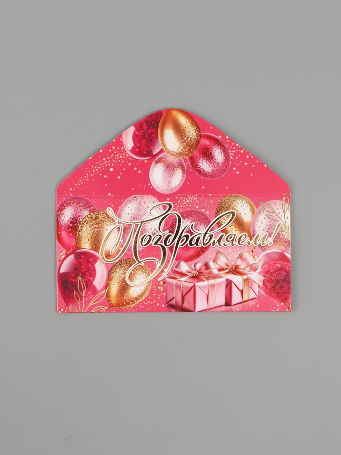 Конверт для денег «Поздравсляем!», розовый/золотой 16.5×8 см