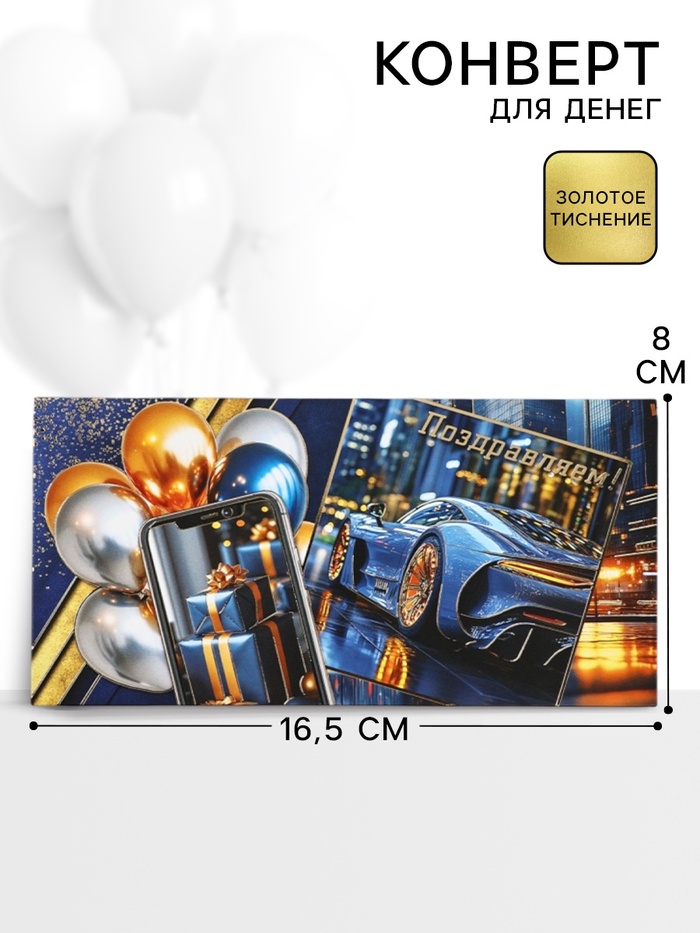 Конверт для денег «Поздравляем!», 16.5×8 см
