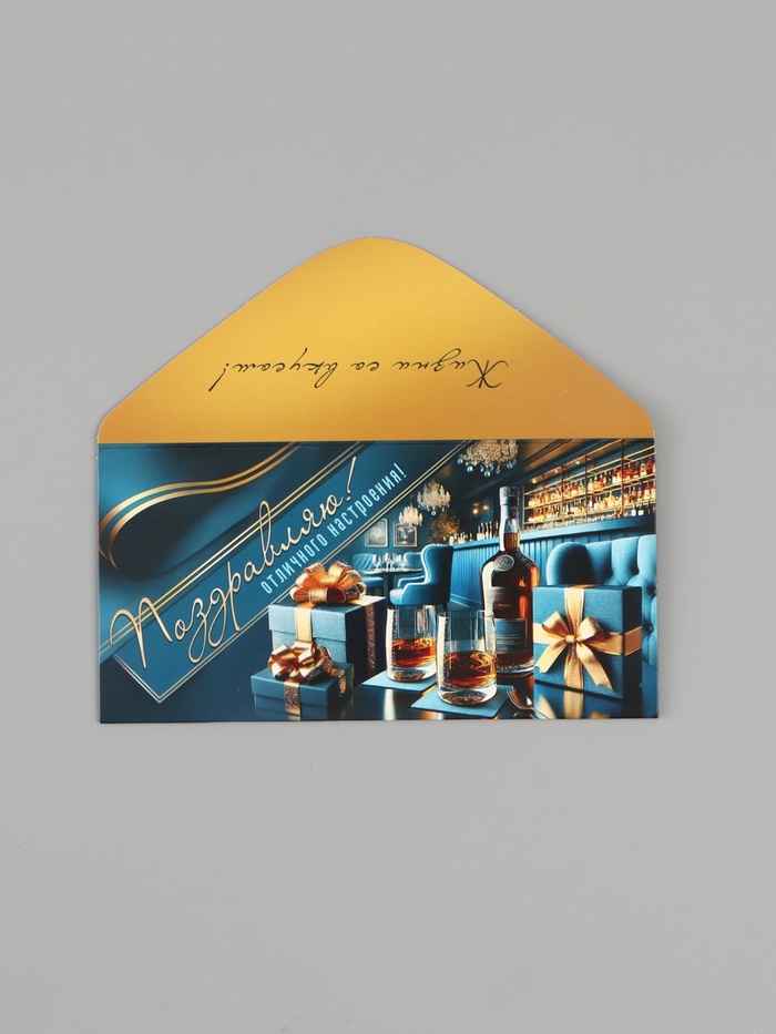 Конверт для денег «Поздравляю!», синий/бирюзовый, 16.5×8 см