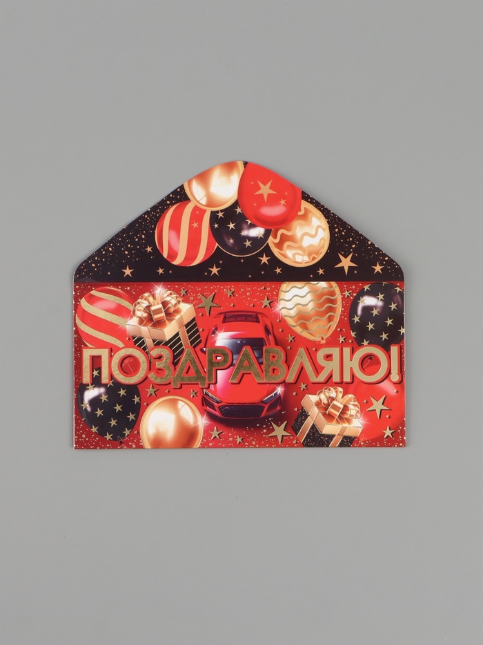 Конверт для денег «Поздравляю!», красный/чёрный, 16.5×8 см
