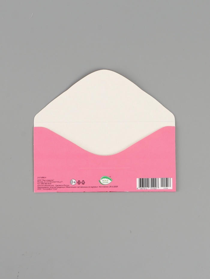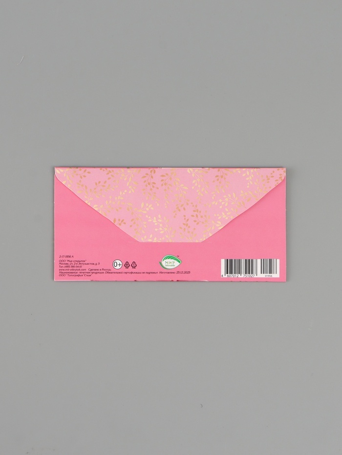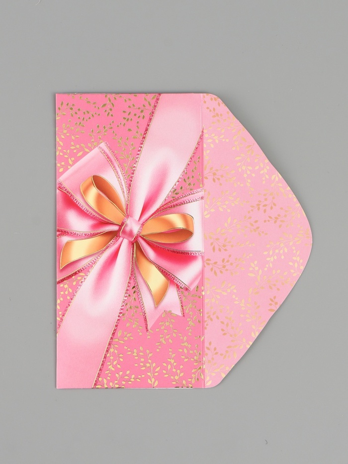 Конверт для денег «С бантом», розовый, 16.5×8 см
