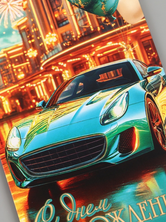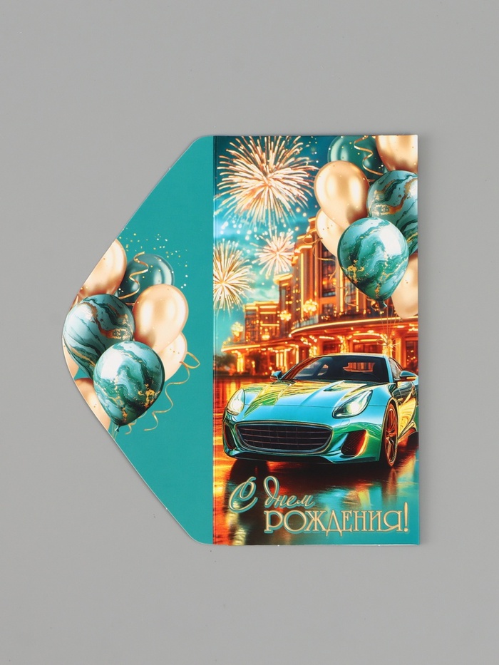 Конверт для денег «С днём рождения!», автомобиль, бирюзовый, 16.5×8 см