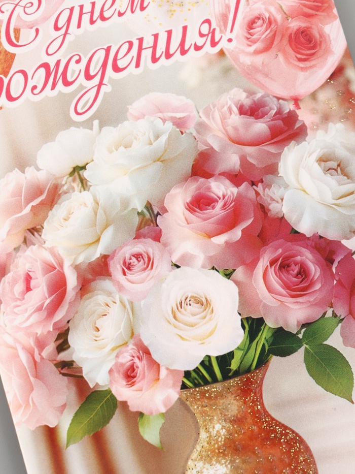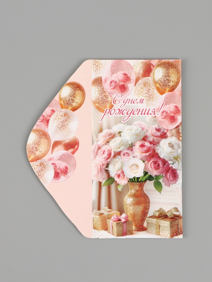 Конверт для денег «С Днём рождения!», букет, подарки, розовый, 16.5×8 см