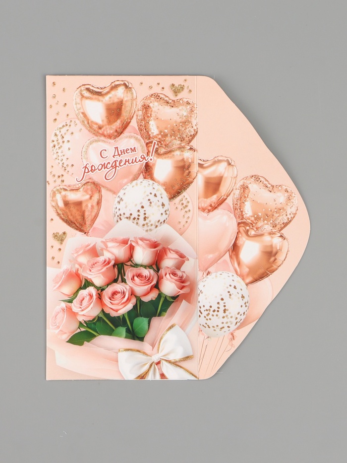 Конверт для денег «С днём рождения!», букет роз, 16.5×8 см