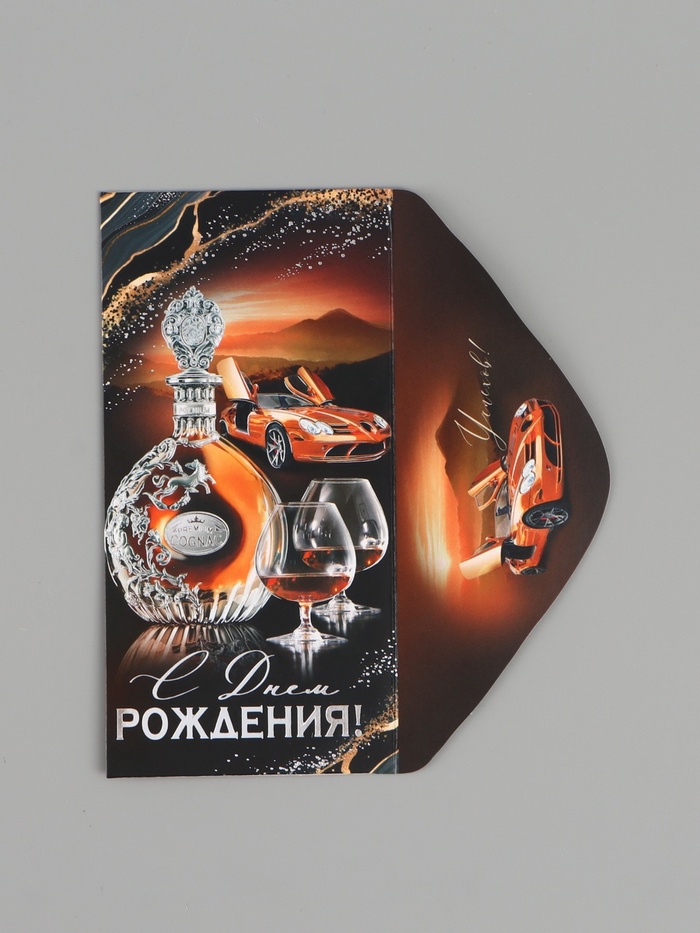 Конверт для денег «С Днем рождения!», чёрный/коричневый, 16.5×8 см