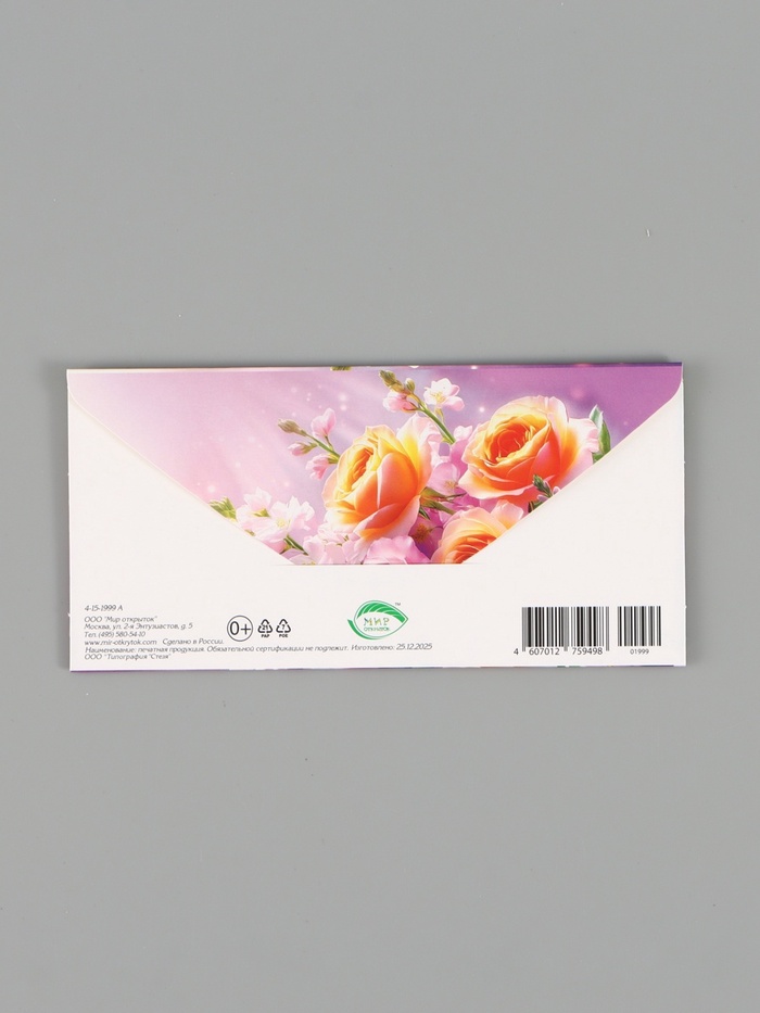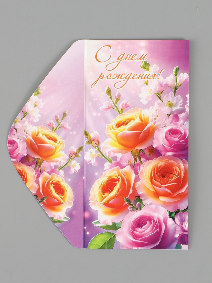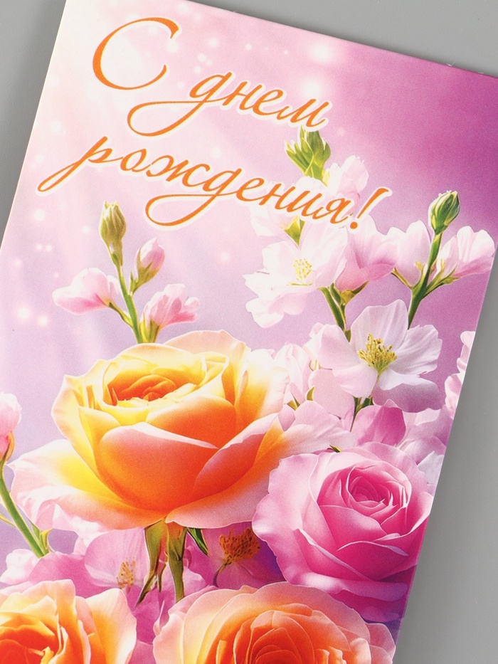 Конверт для денег «С днём рождения!», жёлтый/сиреневый, 16.5×8 см