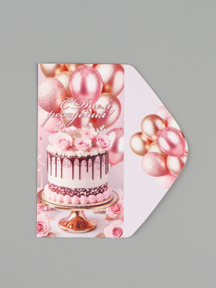 Конверт для денег «С Днём рождения!», розовые пионы, 16.5×8 см