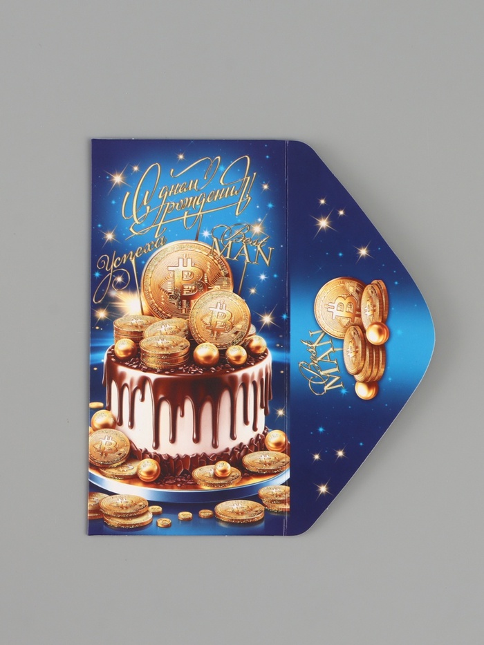 Конверт для денег «С днём рождения!», торт, синий, 16.5×8 см