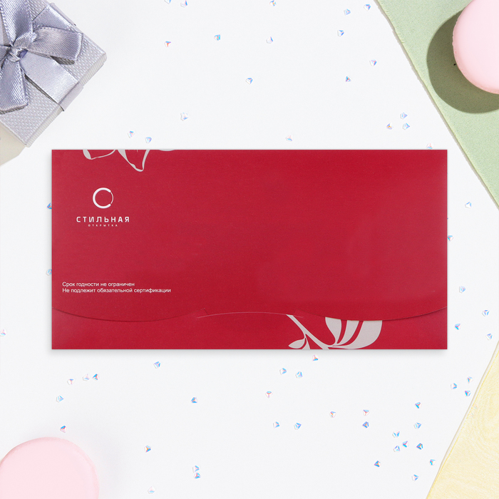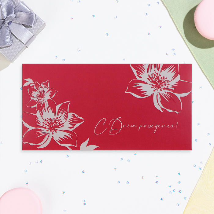Конверт для денег "С Днём Рождения!" цветы на бордовом, 17 х 9 см