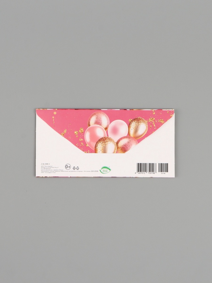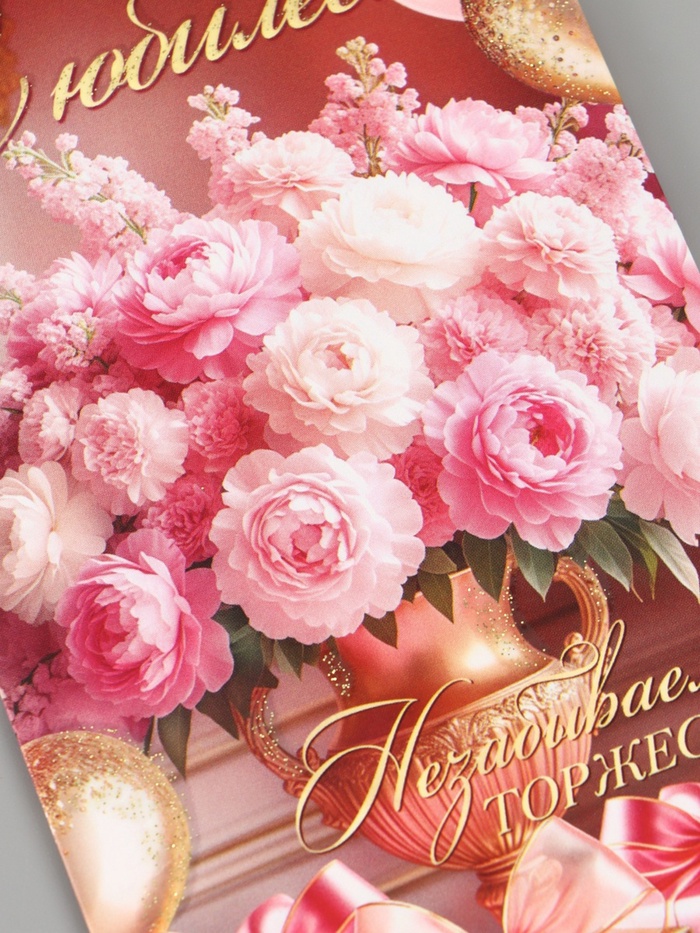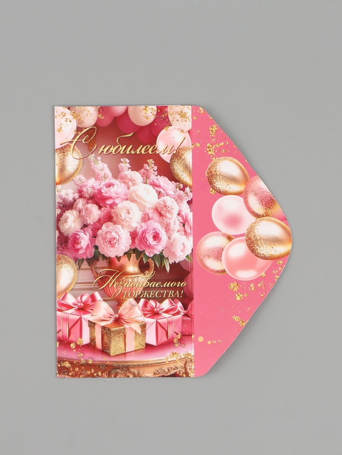 Конверт для денег «С юбилеем!», букет, подарки, розовый, 16.5×8 см