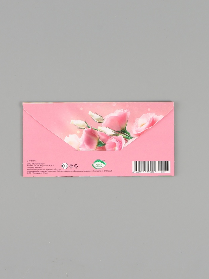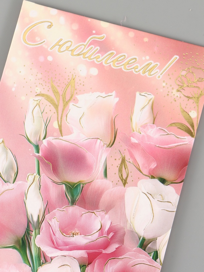 Конверт для денег «С юбилеем!», нежные цветы, 16.5×8 см