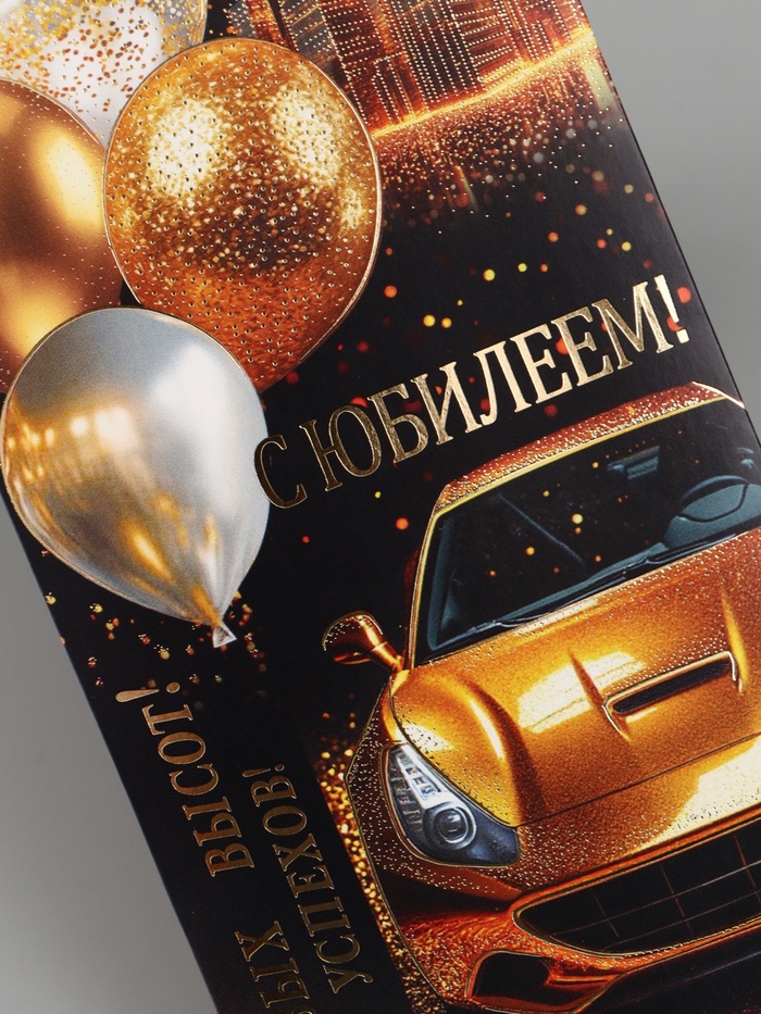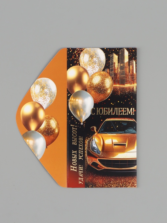 Конверт для денег «С юбилеем!», золотая машина, 16.5×8 см