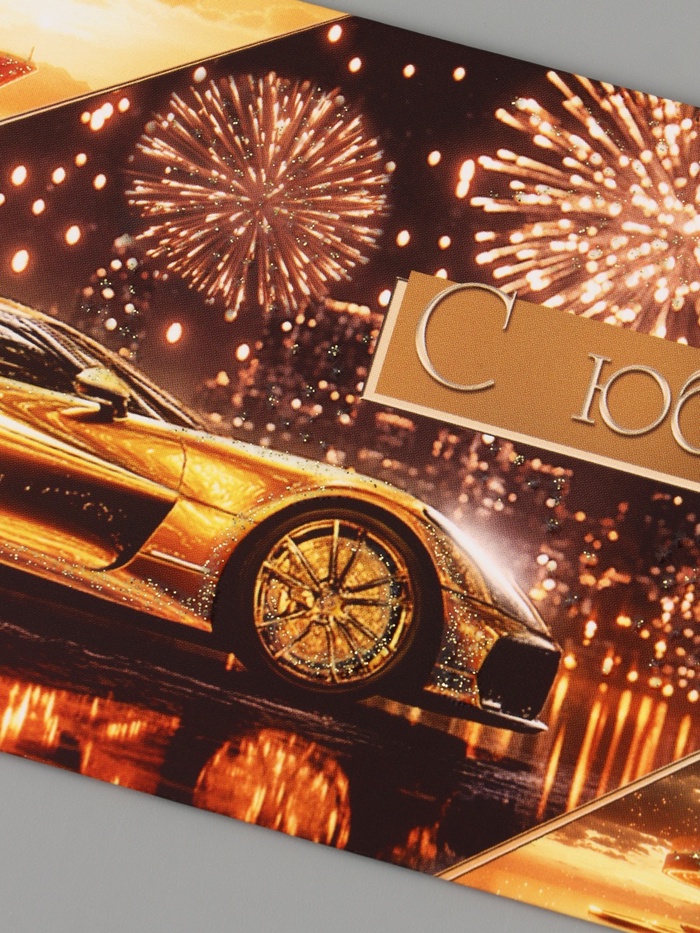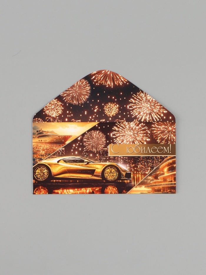 Конверт для денег «С юбилеем!», золотой автомобиль, 16.5×8 см