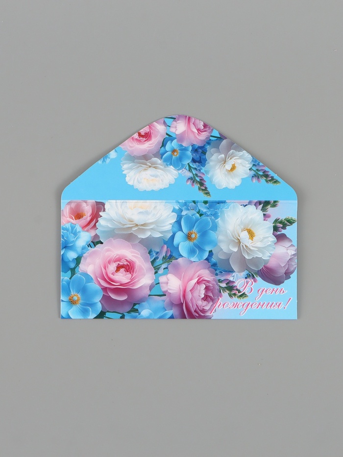 Конверт для денег «В День рождения!», голубой/розовый, 16.5×8 см