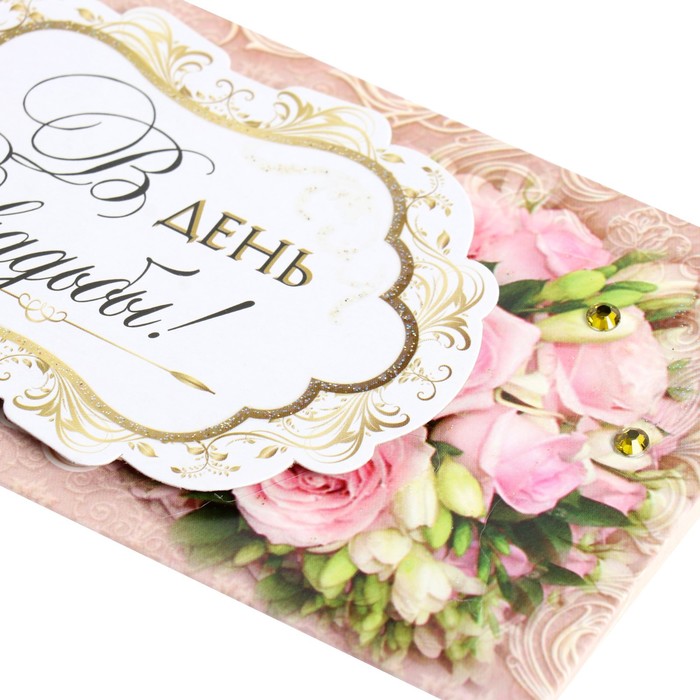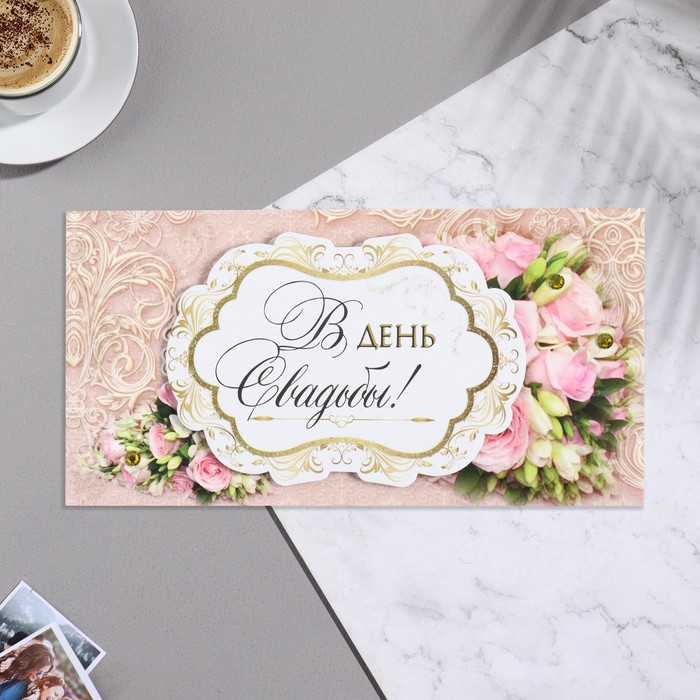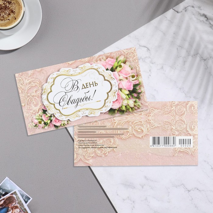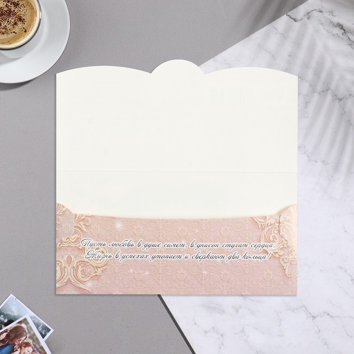 Конверт для денег "В День Свадьбы!" ручная работа, бежевый фон, 17х8,8 см