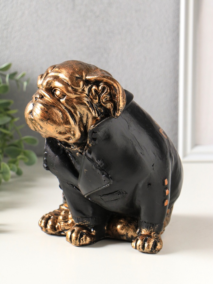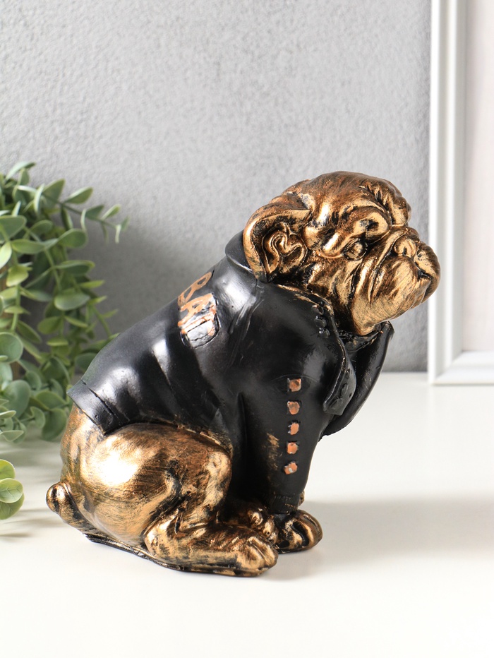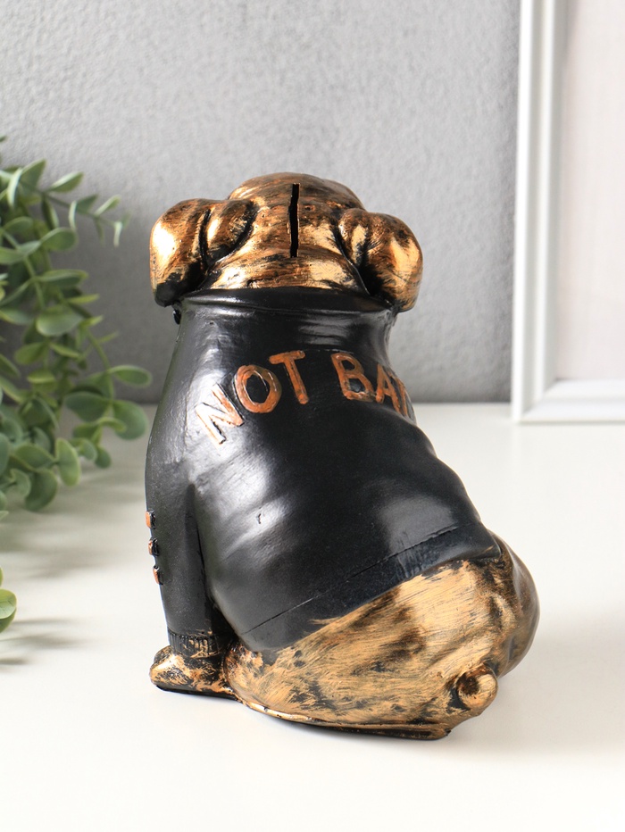 Эта копилка в виде бульдога — не просто ёмкость для монет, а характерный интерьерный акцент. Фигурка собаки с выразительной мордой и в стильной косухе обладает своим нравом и харизмой. Она превращает процесс накопления из рутины в небольшой ритуал с индивидуальностью.