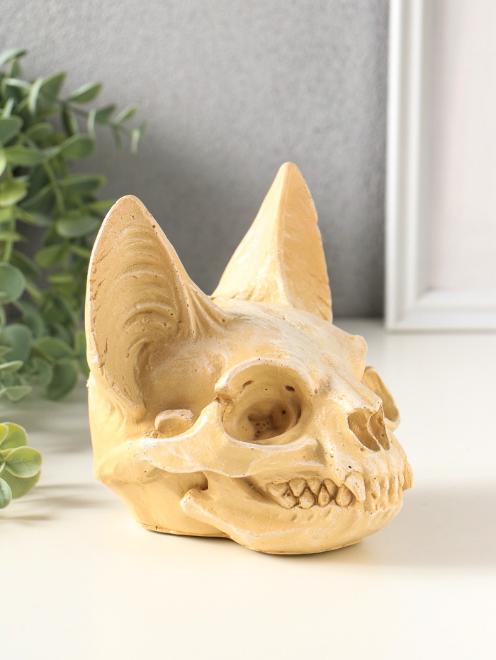 - Скульптурная форма: детализированная статуэтка черепа сфинкса станет выразительным элементом интерьера в кабинете или гостиной.