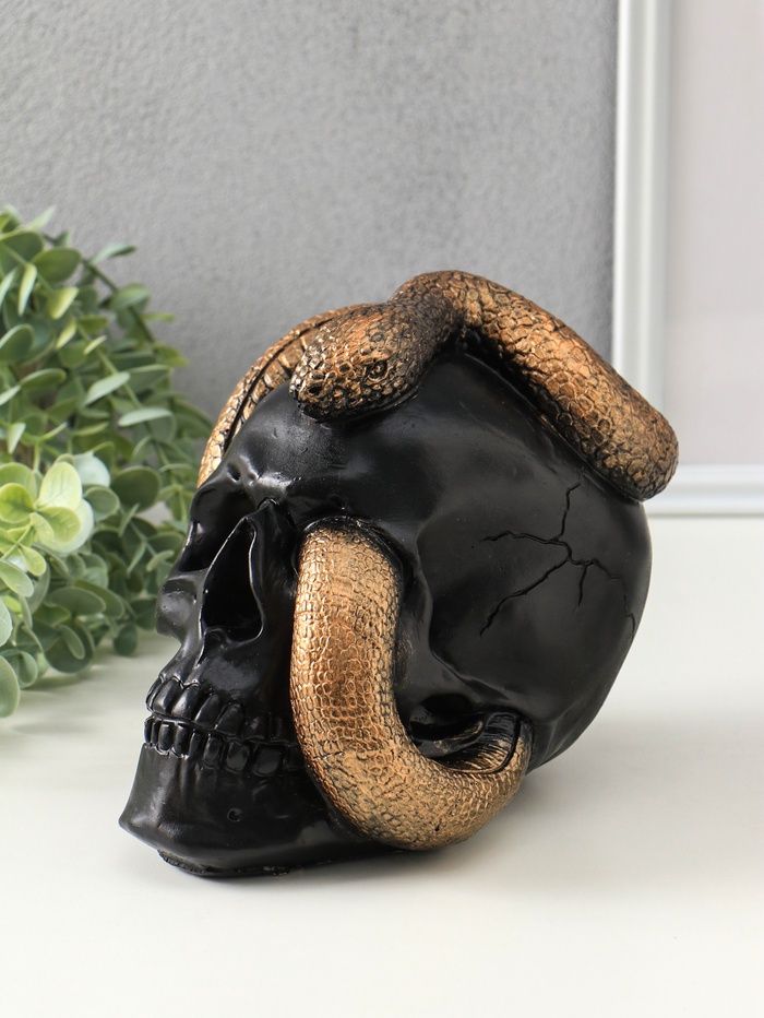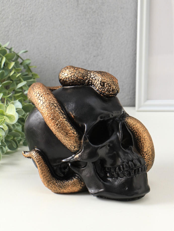 Копилка "Череп со змеей" 18х15х21 см, чёрный